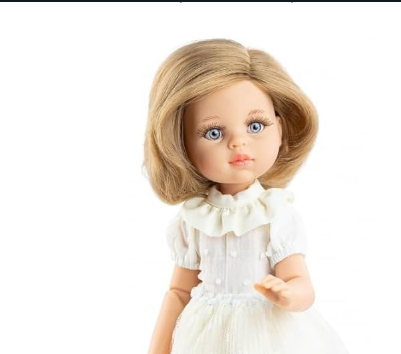 Muñeca Gorjuss de 32 cm., fabricada en vinilo suave, con sus extremidades articuladas y perfumada con la fragancia de rosa y madreselva exclusiva de Gorjuss.